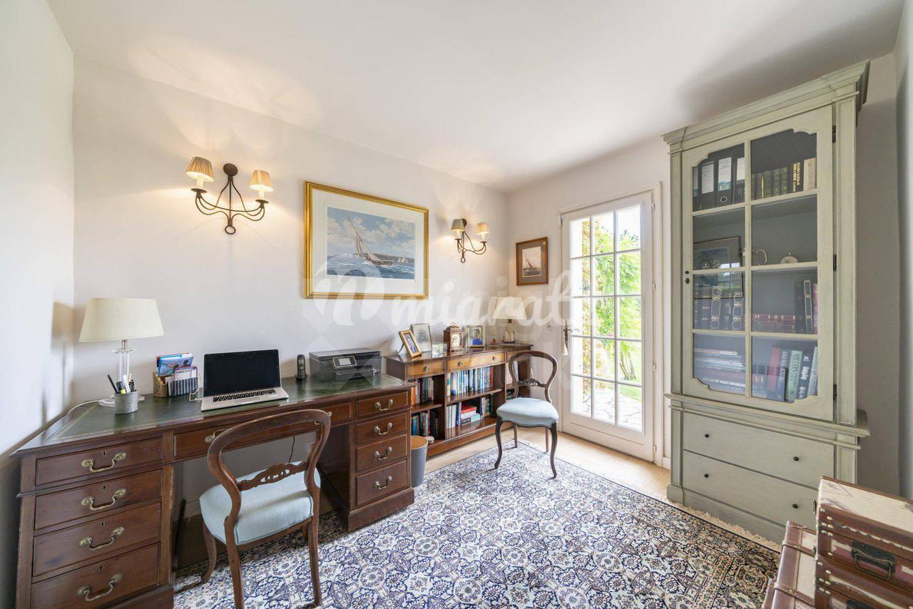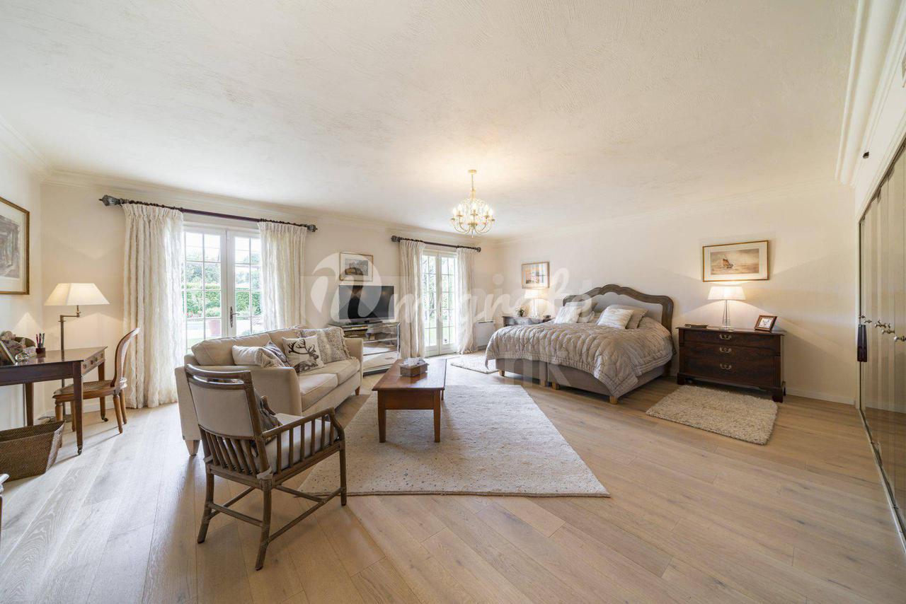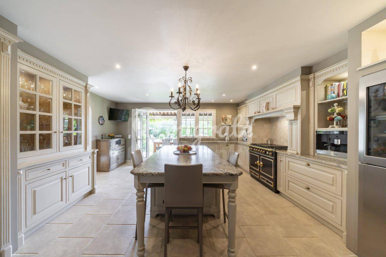 Вилла включает просторную гостиную с камином и прилегающей столовой. Роскошная кухня оборудована гранитными столешницами и высококлассной техникой. Из гостиной и кухни есть выход на крытую террасу с обеденными зонами и зоной отдыха. Также на первом этаже находится большая главная спальня с собственной ванной комнатой, гардеробной и прилегающим кабинетом. Из этих комнат имеется выход в сад.