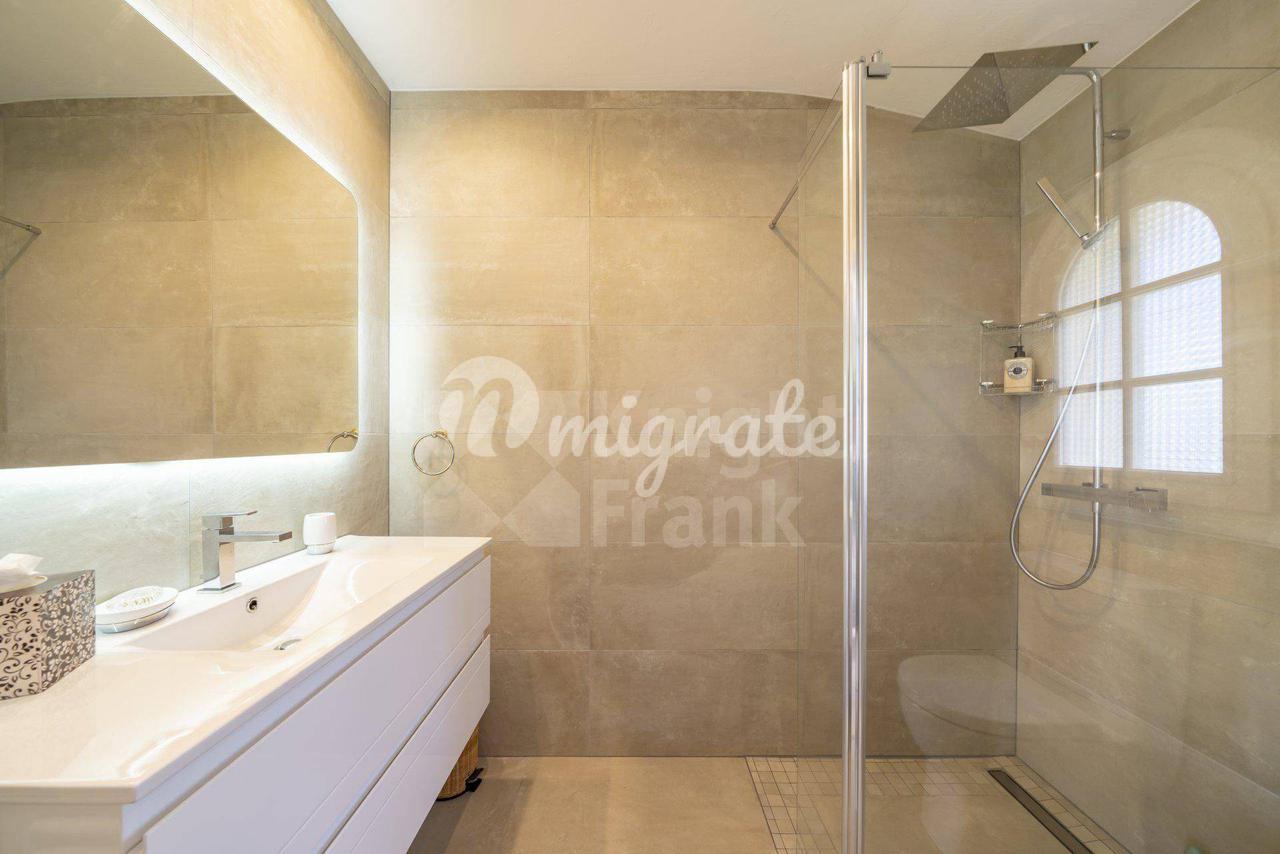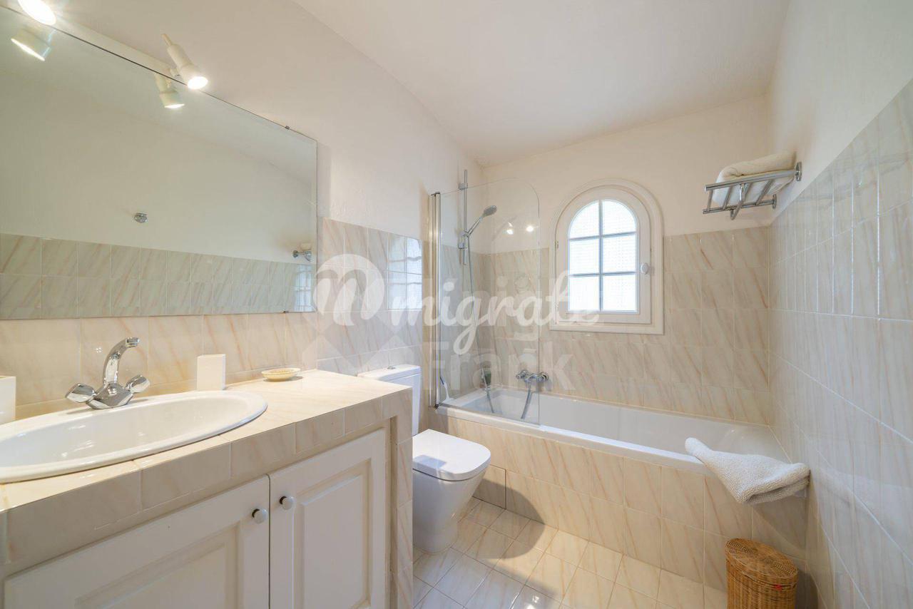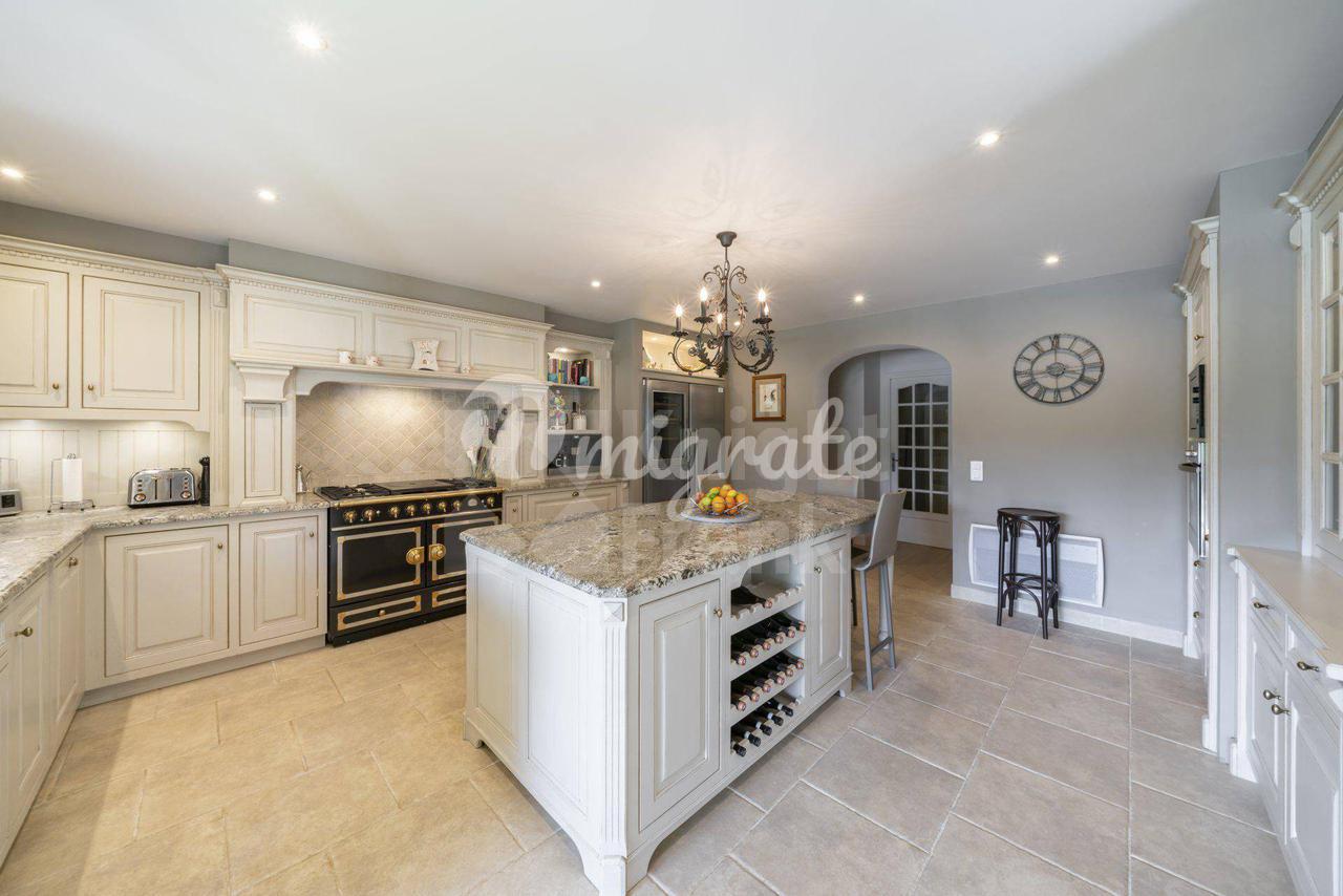 Вилла включает просторную гостиную с камином и прилегающей столовой. Роскошная кухня оборудована гранитными столешницами и высококлассной техникой. Из гостиной и кухни есть выход на крытую террасу с обеденными зонами и зоной отдыха. Также на первом этаже находится большая главная спальня с собственной ванной комнатой, гардеробной и прилегающим кабинетом. Из этих комнат имеется выход в сад.