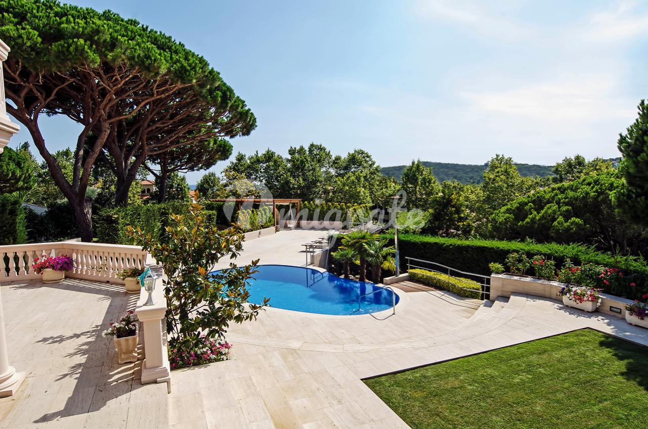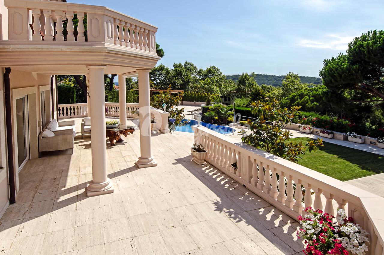 Вилла расположена в престижном охраняемом поселке «La Gavina» в городе Сагаро. На участке находится основной дом, гостевой дом, теннисные корты, дом для барбекю и бассейн. Основной дом включает салон-столовую с камином и выходом на террасу, полностью оборудованную кухню, 5 спален, 4 ванные комнаты, тренажерный зал, SPA-зону с сауной и джакузи, апартаменты для персонала и гараж на 2 автомобиля.