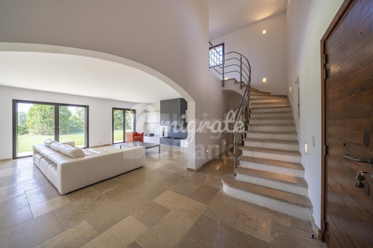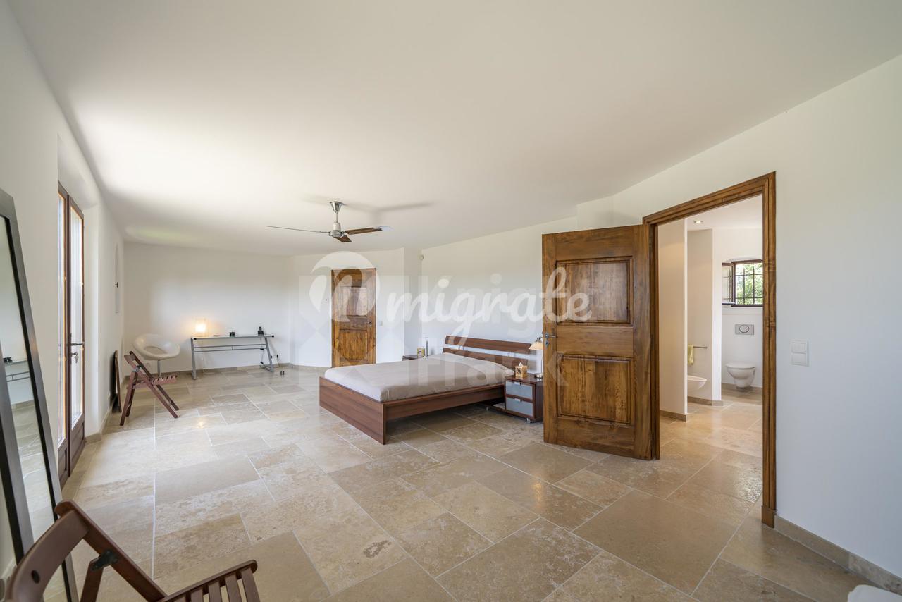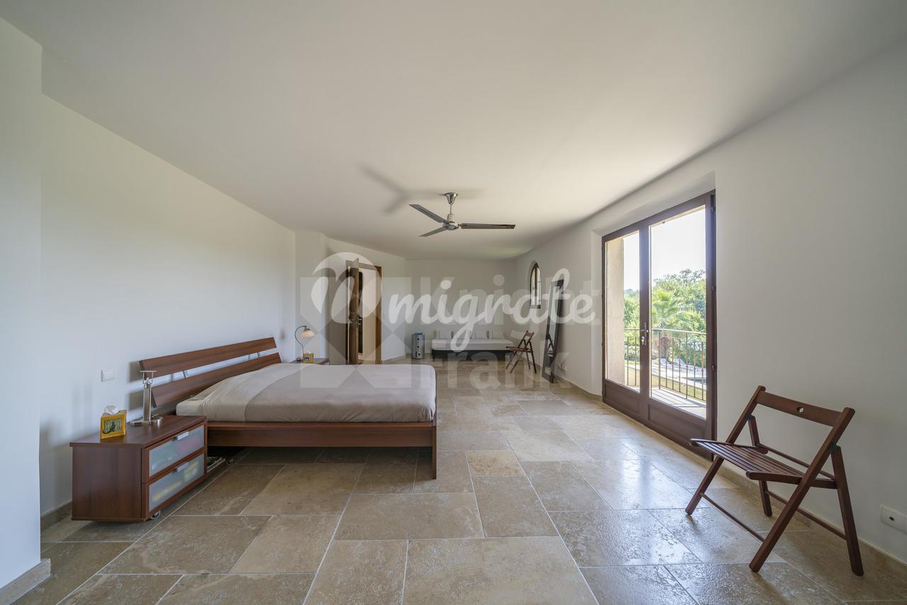 Вилла расположена на участке площадью 8 500 кв. м. На участке разбиты оливковые деревья и расположен подогреваемый бассейн и гараж на несколько автомобилей. Техническое оснащение включает электрические жалюзи, систему орошения, уличное освещение, сигнализацию, электрические ворота.
