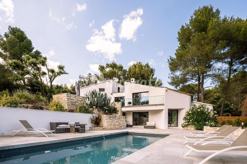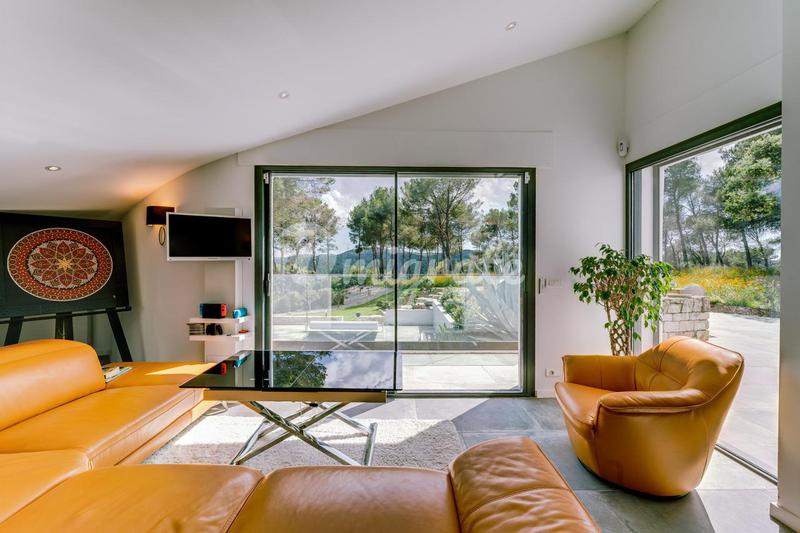 Продается вилла в великолепном командном месте, в двух шагах от средневековой деревни Гримо. Имущество с панорамным видом на залив Сен-Тропе включает в себя главную виллу в неопровансальском стиле, до