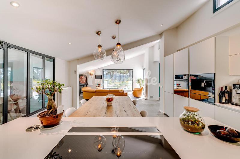 Эта современная вилла площадью около 590 кв. м, расположенная на популярном курорте Кап д'Антиб, будет включать в себя: На первом этаже - большая гостиная, выходящая на террасу 18 кв.м, столовая и отд