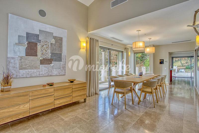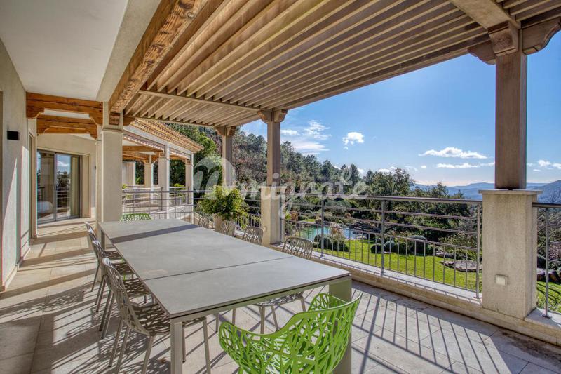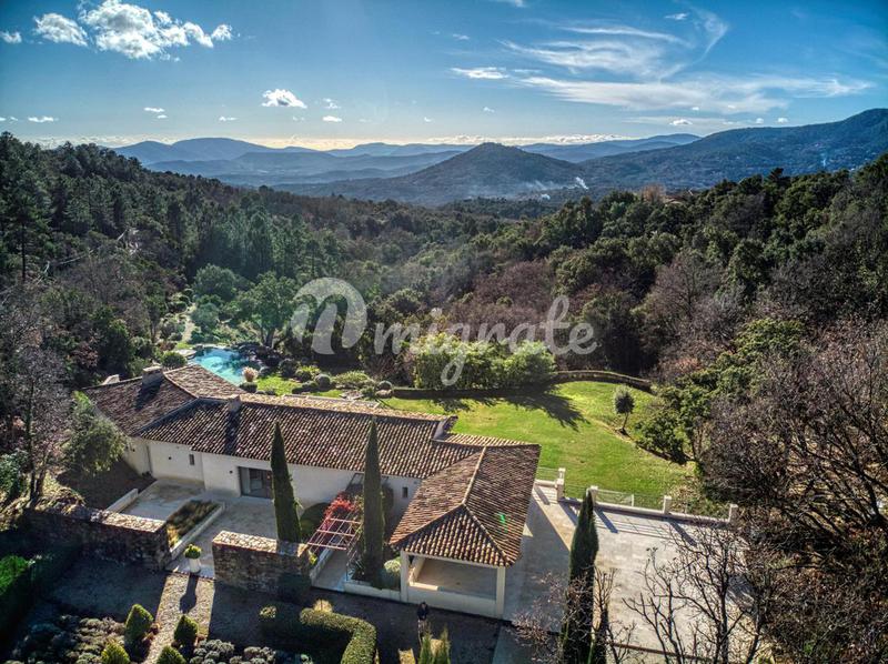 Продается вилла в великолепном командном месте, в двух шагах от средневековой деревни Гримо. Имущество с панорамным видом на залив Сен-Тропе включает в себя главную виллу в неопровансальском стиле, до