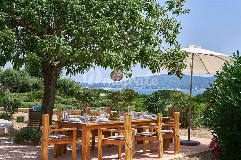 Продается вилла в великолепном командном месте, в двух шагах от средневековой деревни Гримо. Имущество с панорамным видом на залив Сен-Тропе включает в себя главную виллу в неопровансальском стиле, до