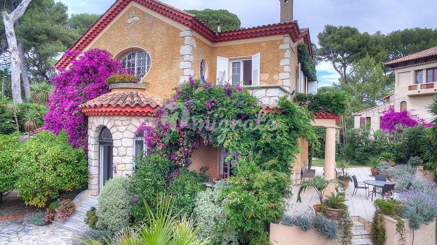 Вилла с видом на море расположена на побережье в Кап д’Антибе, недалеко от пляжей. Вилла площадью 110 кв. м включает 4 спальни и 3 ванные комнаты. На участке разбит сад и расположен гараж.
