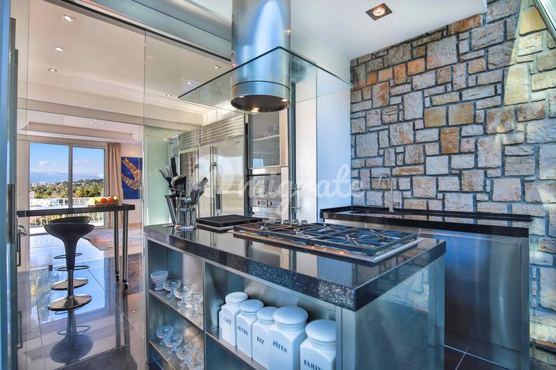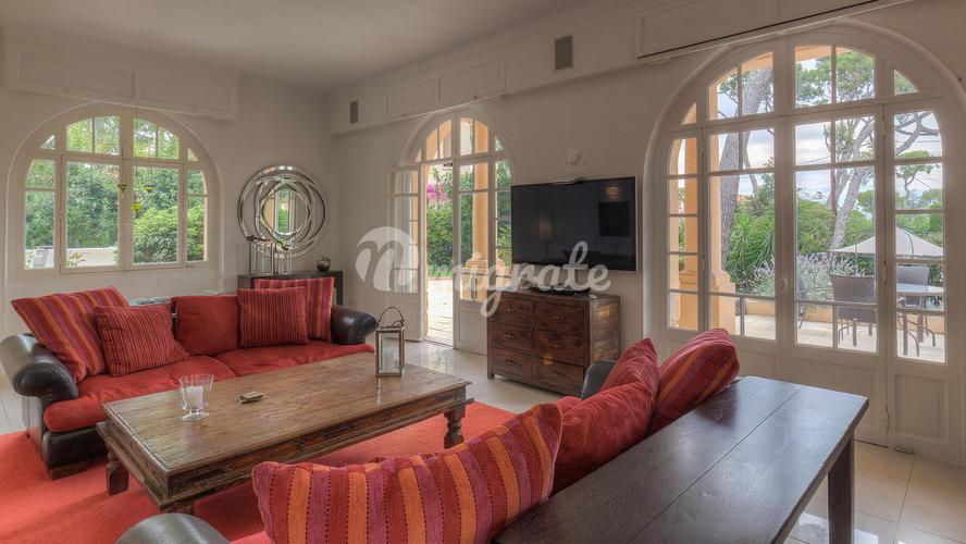 Современная вилла расположена на мысе Антиб, в 400 метрах от пляжа. Вилла включает 4 спальни, 4 ванные комнаты, просторную гостиную с камином, столовую, полностью оснащенную кухню, гараж на 5 автомоби