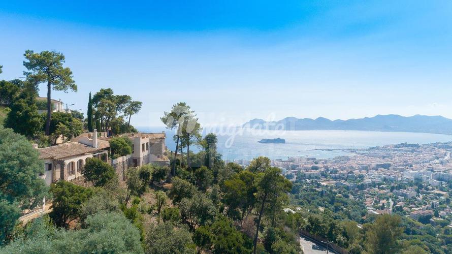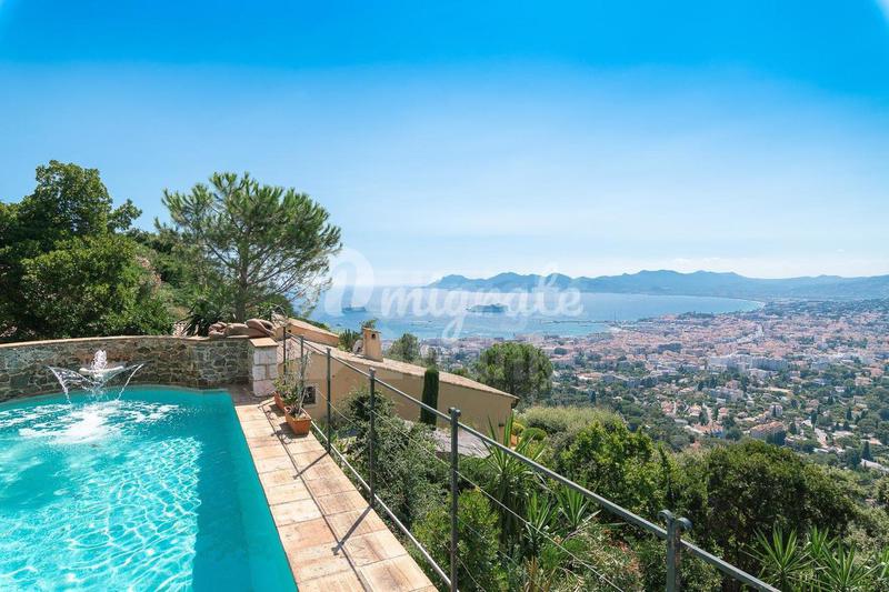 Вилла с панорамными видами на море и горы расположена в самом сердце района Ле-Канне, в закрытом охраняемом поселке.На первом этаже находится гостиная, оборудованная кухня, вторая гостиная с камином и