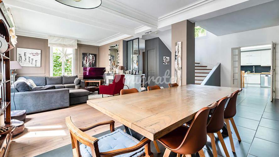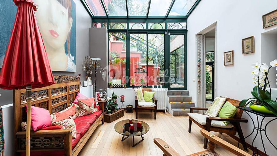 Это свойство находится в исключительном месте на Монмартре. Великолепный дом 1920-х годов площадью 202,01 кв.м (197,25 кв.м жилой площади), залитый светом и окруженный зеленью. Этот дом с современным