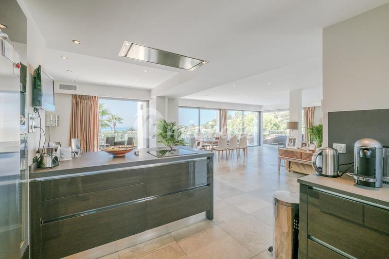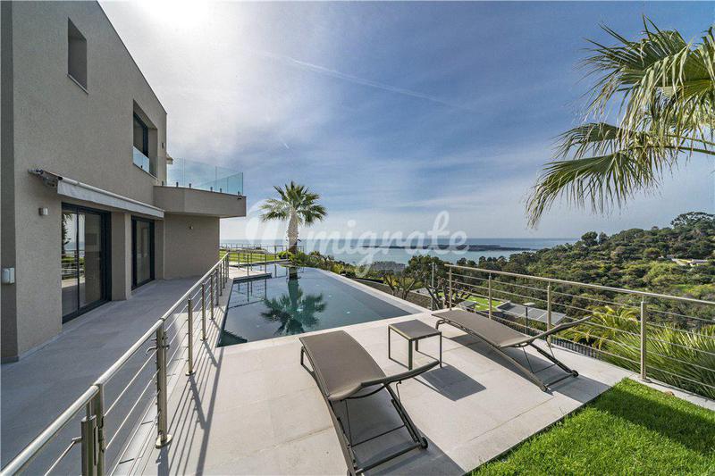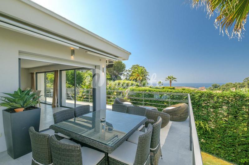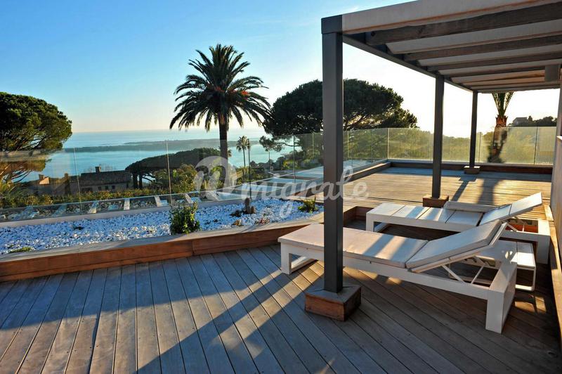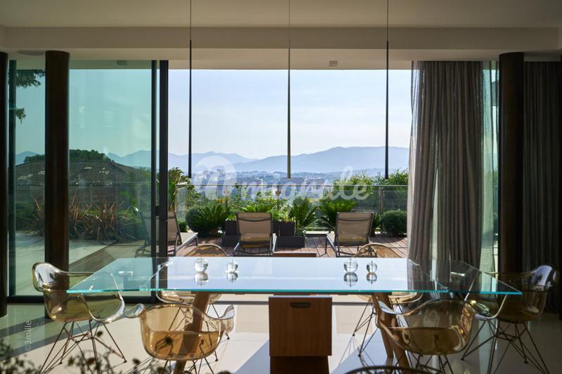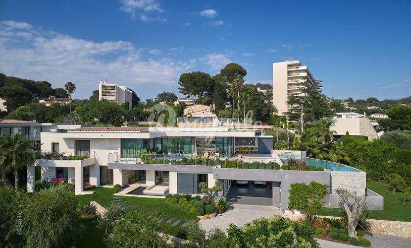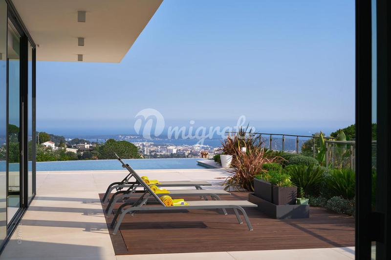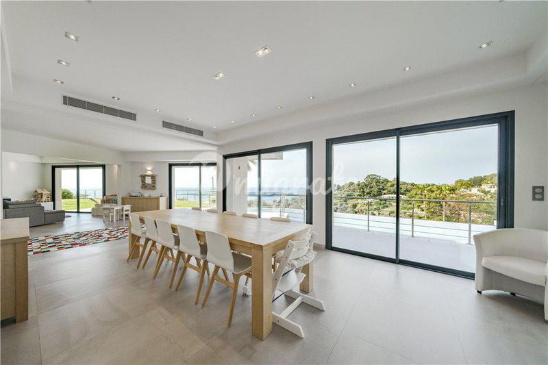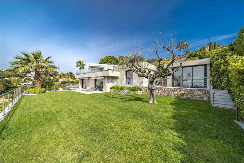 Современная вилла с захватывающим панорамным видом на Лазурное побережье расположена в Каннах. Вилла включает просторную гостиную с камином и выходом на террасу, столовую, полностью оснащенную кухню и