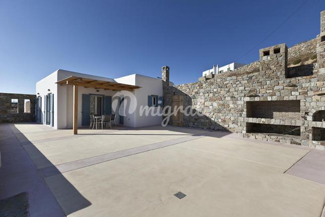 Вилла в традиционном стиле архитектуры Киклад расположена на острове Миконос. Вилла имеет жилую площадь 436 кв. м, располагается на 3 этажах и состоит из прихожей, гостиной с камином, столовой, кухни,