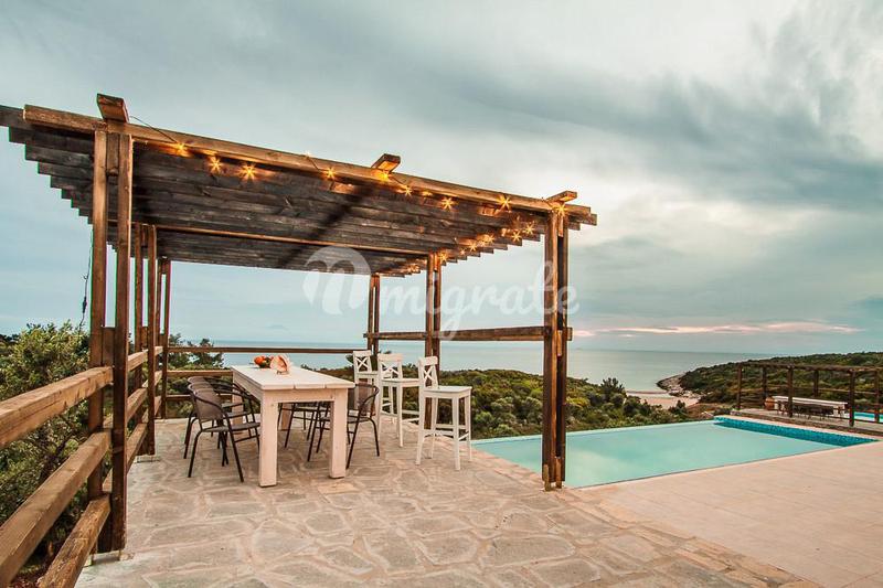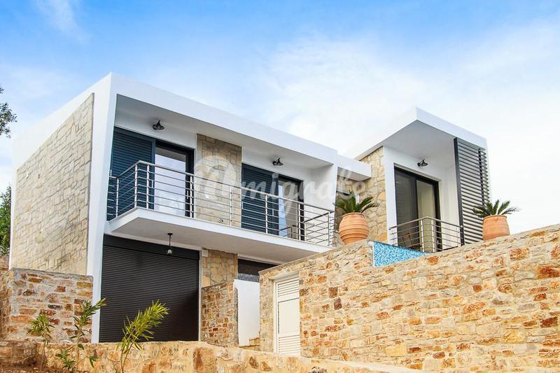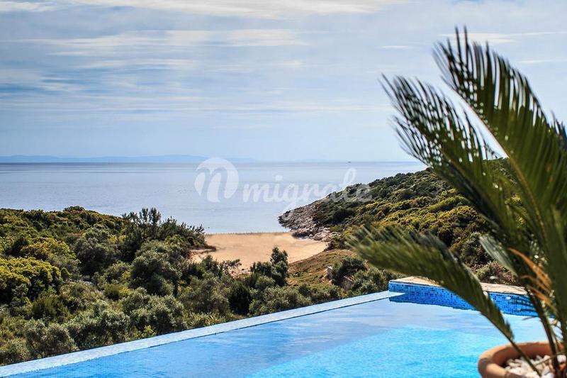 Современная вилла с видом на море и горы расположена в уединенном месте на полуострове Пелопоннес, рядом с песчаным пляжем. Вилла состоит из 7 спален, 7 ванных комнат, прихожей, двух гостиных, кухни,