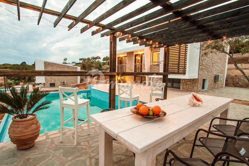 Прекрасная недавно построенная вилла расположена всего в 20 метрах от берега и всего в 50 метрах от пляжа и таверн в живописной рыбацкой деревушке Мохлос. Вилла была построена в 2017 году и полностью