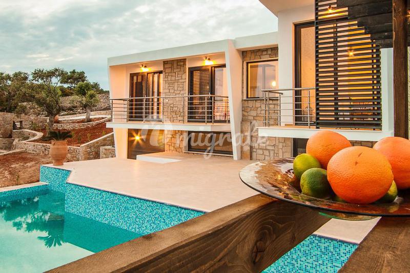 Вилла расположена на острове Крит на зелёных холмах, у лазурной морской воды, в окружении оливковых и апельсиновых деревьев. Вилла состоит из двух этажей. На первом этаже расположена гостиная с зонами