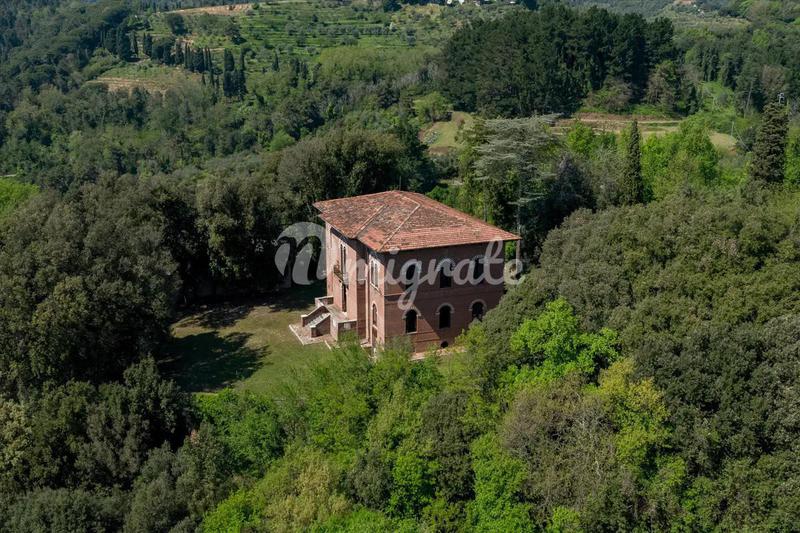 Красивая вилла начала 19 века, продается недалеко от Лукки, на склоне холма, в панорамном месте, с прекрасным видом на сельскую местность, в окружении большого и ухоженного сада и примерно 1,5 га земл