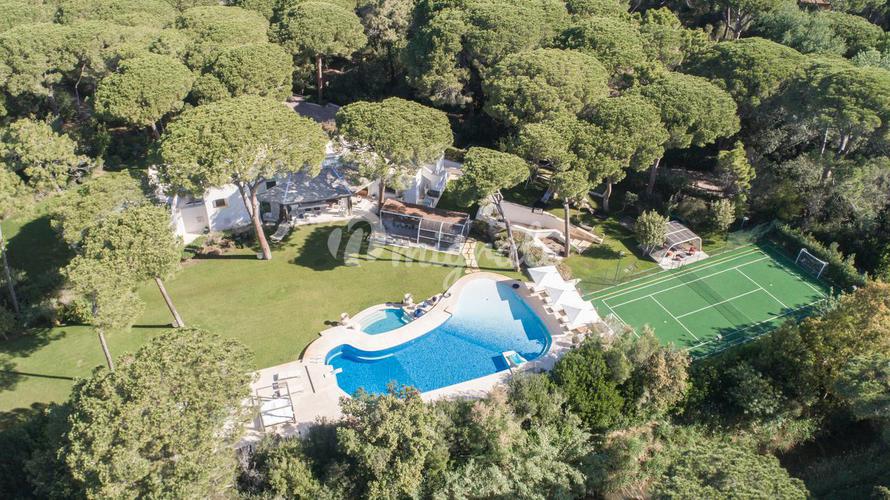 Великолепная вилла с собственным бассейном, теннисным кортом, просторными террасами в пешей доступности от песчаных пляжей расположена в престижном охраняемом поселке в районе Роккамаре. Это настоящий