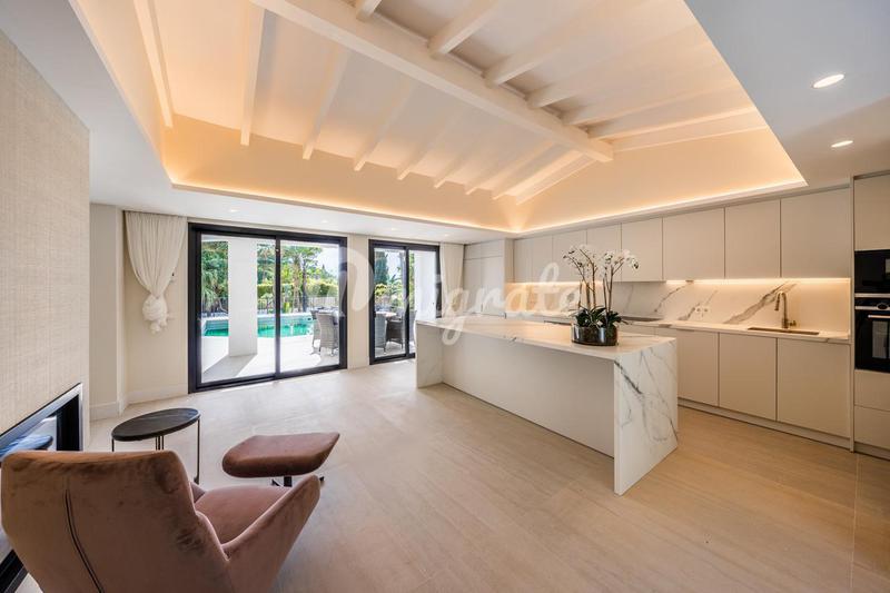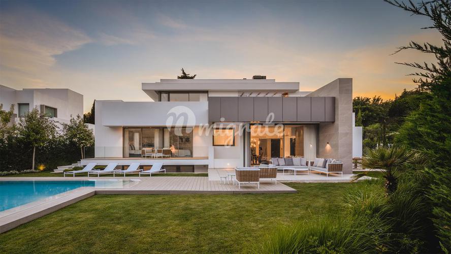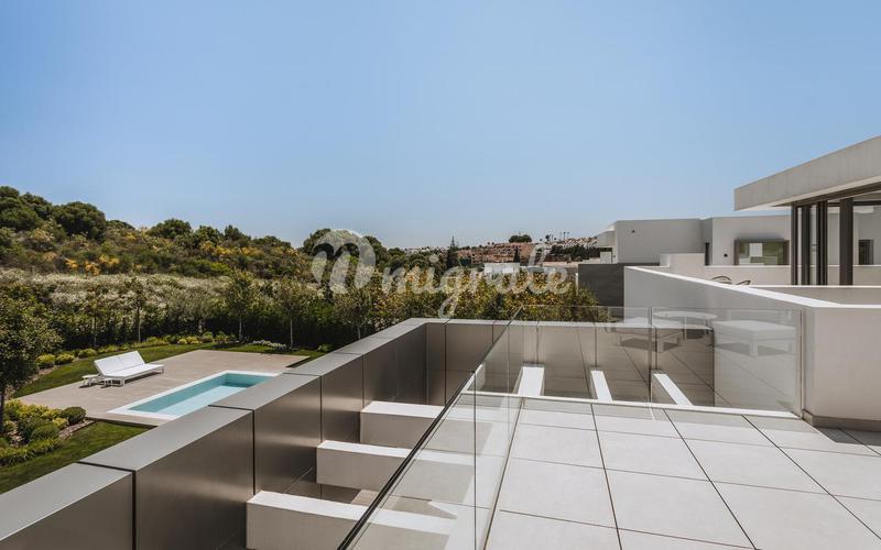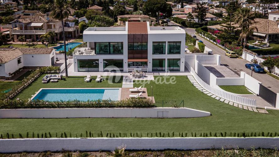 Вилла в современном стиле в самом сердце Параисо Медио, тихого и приятного жилого района, окруженного полями для гольфа, примерно в 2 км от пляжа, в 11 км от Пуэрто Бануса и недалеко от ближайшего ком