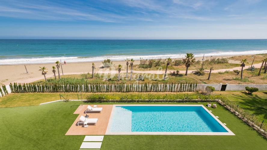 Недвижимость с прямым доступом к пляжу, панорамным видом на море и Гибралтар и видом на юг. Проект спроектирован таким образом, что вилла имеет высокие потолки и просторные помещения открытой планиров