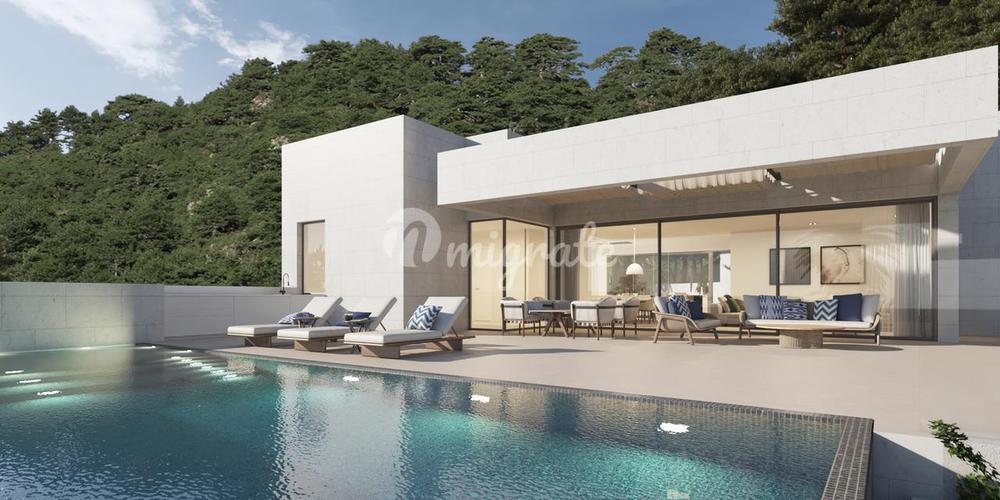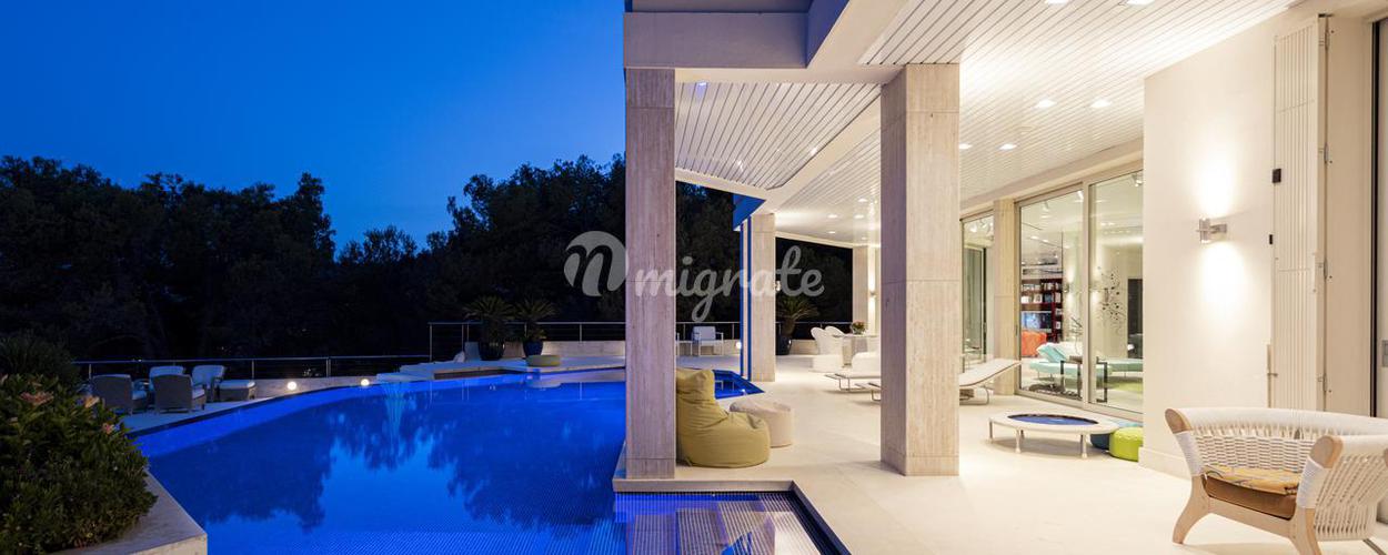 Удивительная недавно построенная вилла, расположенная на участке площадью 1175 м2, расположенном на холмах Коста-ден-Бланес, с захватывающим панорамным видом на море, гавань для яхт и залив Пуэрто-Пор