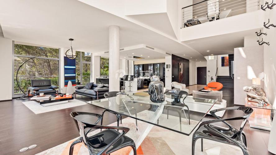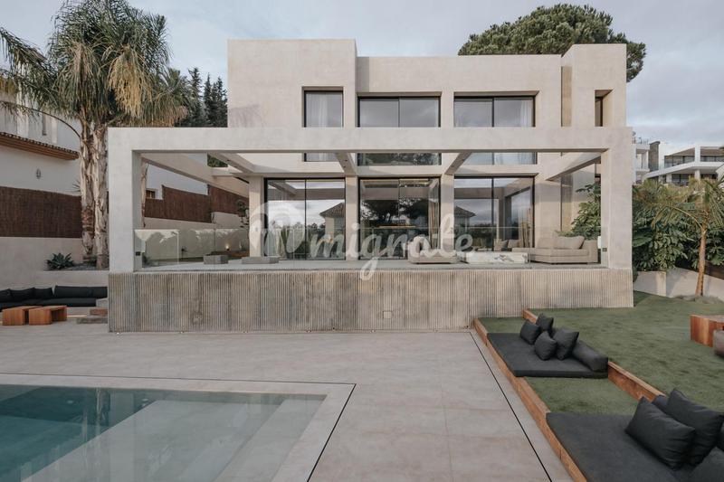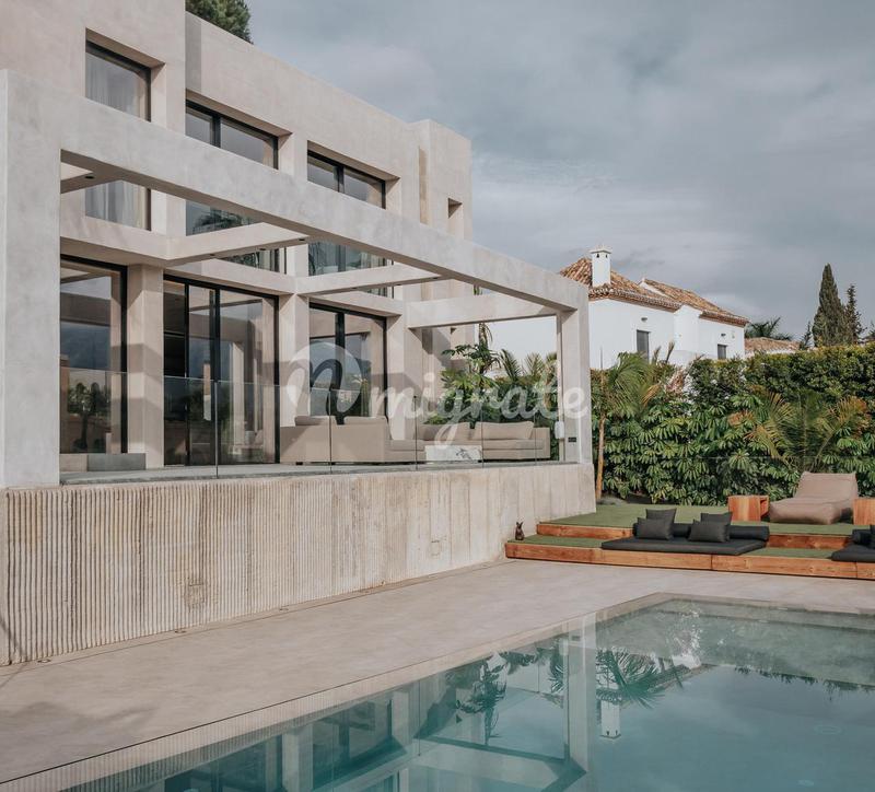 Эта двухквартирная вилла современного дизайна расположена в самом престижном жилом районе Марбельи, Сьерра-Бланка, в комплексе Meisho Hills, построенном в 2012 году. Из окон открывается вид на побереж