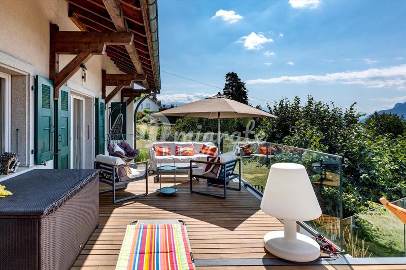 Это свойство имеет около 500 кв. м жилой площади, в уникальном месте, с захватывающим видом на озеро, горы и замок Блоне. Этот дом построен на четырех уровнях. На первом этаже находится большая прихож