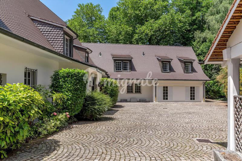 Этот внушительный дом расположен в уединенном районе вилл, рядом с полем для гольфа, всего в 15 минутах от центра Лозанны. Закрытый подъезд приветствует посетителей, а большой холл ведет на площадь 75