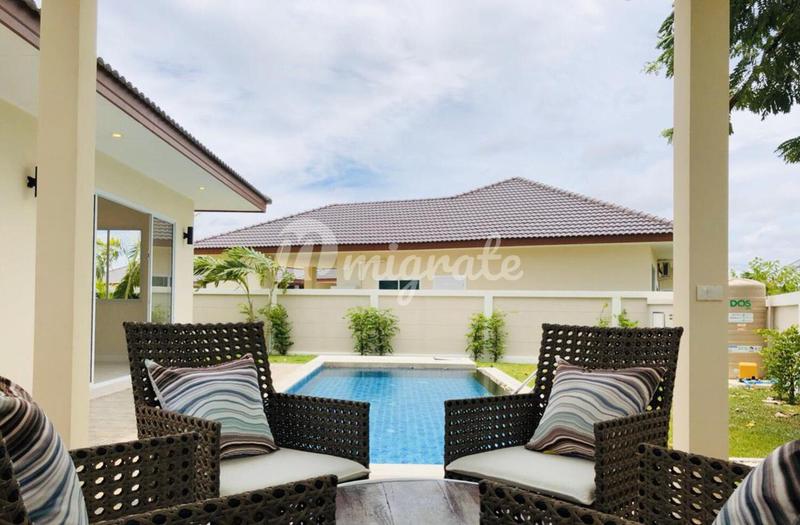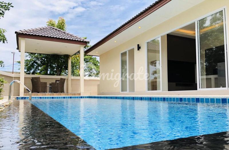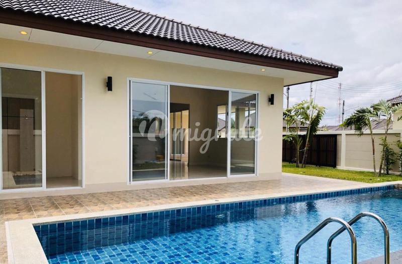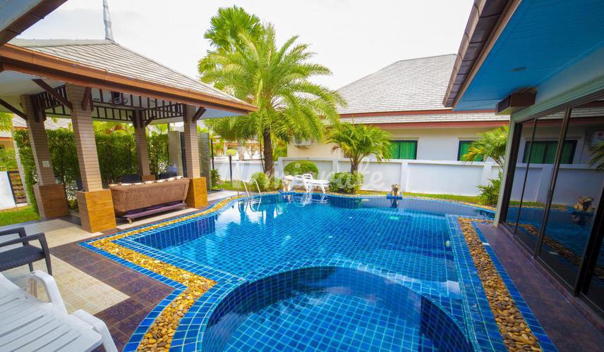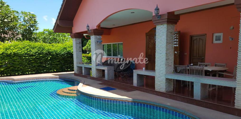 Вилла с огромной территорией в 1600 кв.м. и бассейном в поселке Nong Pla lai. На вилле дом с 3 спальнями и 4 ванными комнатами. Дом - 180 кв.м. с большой террасой возле бассейна, озером и тропическим