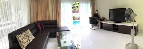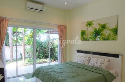 Одноэтажная вилла с бассейном и садом в поселке Garden Villa - 3 в районе Huay Yai. Площадь дома составляет 140 кв.м., площадь участка - около 470 кв. м. В доме 3 спальни и 4 ванных комнаты. В доме вс