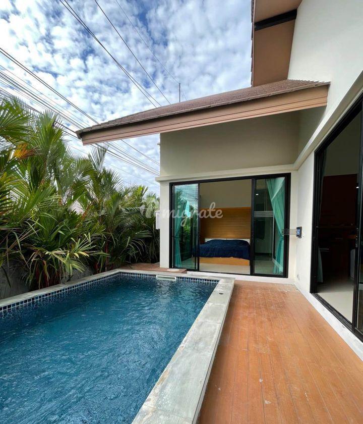Эта вилла с бассейном и двумя спальнями, каждая с отдельными ванными комнатами, предлагает идеальное место для жизни. Располагается вилла в живописном районе Чалонг, окружена тропической природой и на