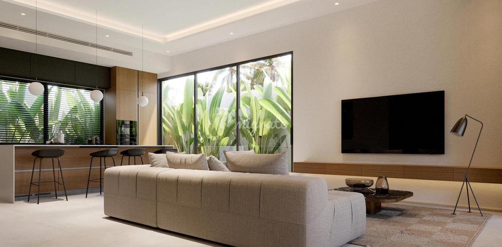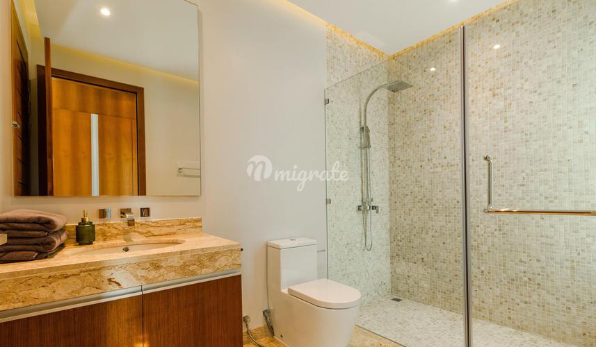 Вилла с 4-мя спальнями и 5-ю ванными комнатами в комплексе. Вилла занимает 2.5 этажа: на первом расположится парковка на 3 автомобиля, на втором - гостиная с выходом в приватный бассейн и отдельно кух