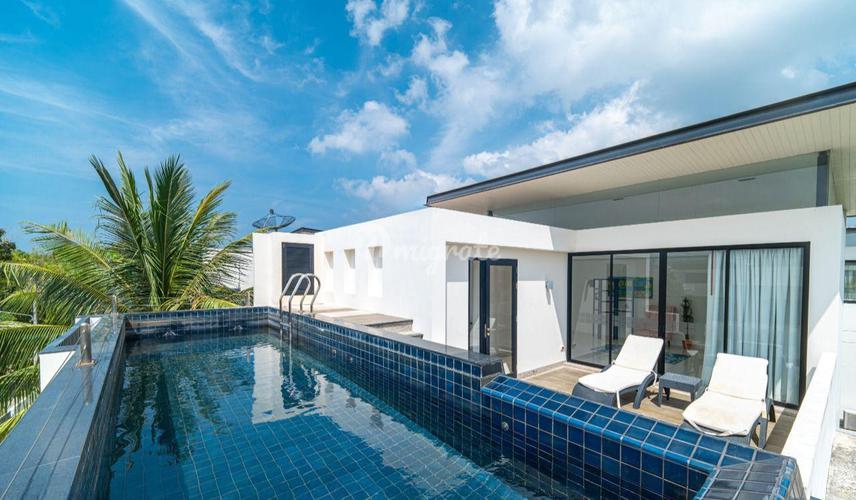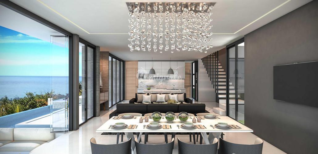 Вилла с бассейном, расположенном на третьем этаже. С террасы у бассейна открывается потрясающий вид на закат и горы, покрытые изумрудной тропической зеленью. Вилла с 5-ю спальнями, каждая из которых о