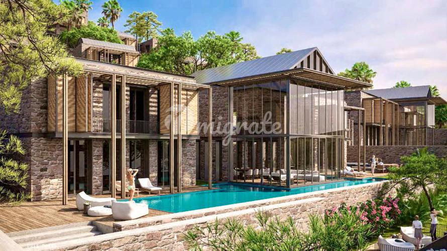 Уединенный комплекс вилл с видом на Эгейское море и частным пляжем. Проект включает в себя 45 вилл, двухэтажные. Расположен посреди прекрасных лесов Бодрума и недалеко от бирюзового берега залива. На