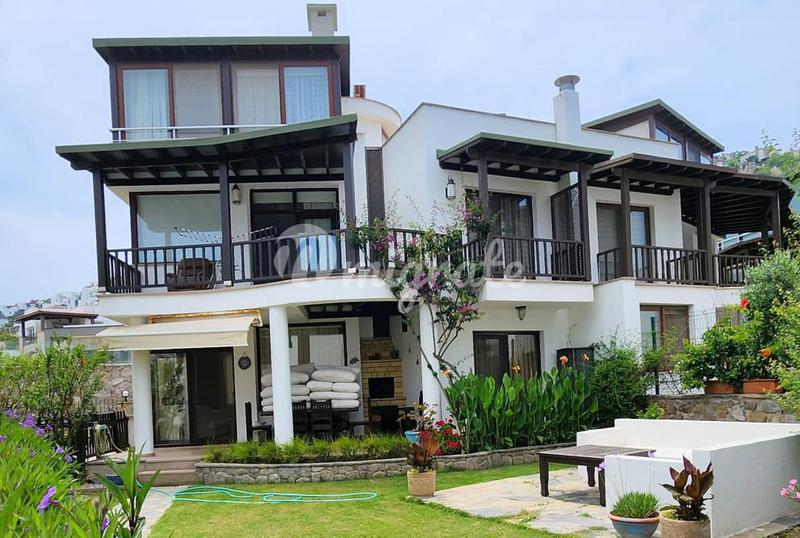 Отдельная трехэтажная вилла в Бодруме. Особенности: 4 спальни, 4 ванные комнаты, 1 туалет, 1 гостиная и кухня, частный бассейн, частная крытая автостоянка, частный задний и передний сад, терраса с пат