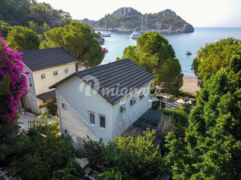 3-этажная вилла 4+1 расположена на берегу моря в живописной бухте. Рядом расположены горные вершины, благодаря чему территория насыщается горным, свежим воздухом. На вилле есть всё что нужно для комфо