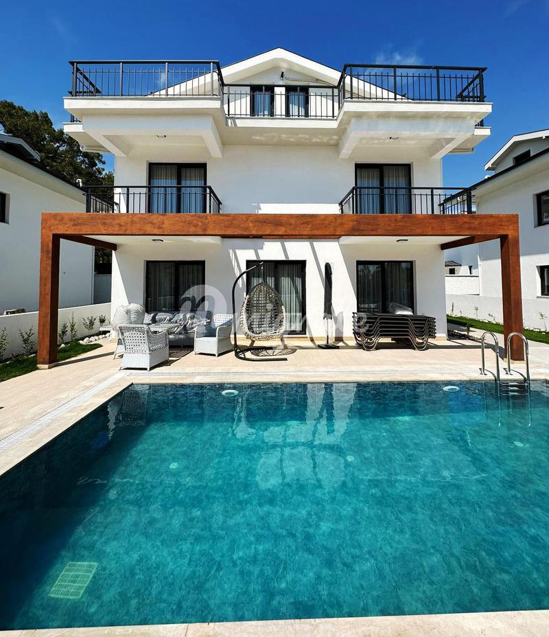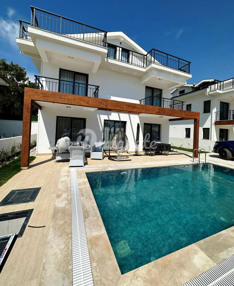 Красивая отдельная вилла в Овачике в Фетхие - 3 спальни, 3 ванные комнаты, Дуплекс (2 этажа), большой балкон и садовая терраса у бассейна. Частный бассейн, современный интерьер, вся мебель и кухонная