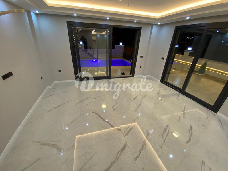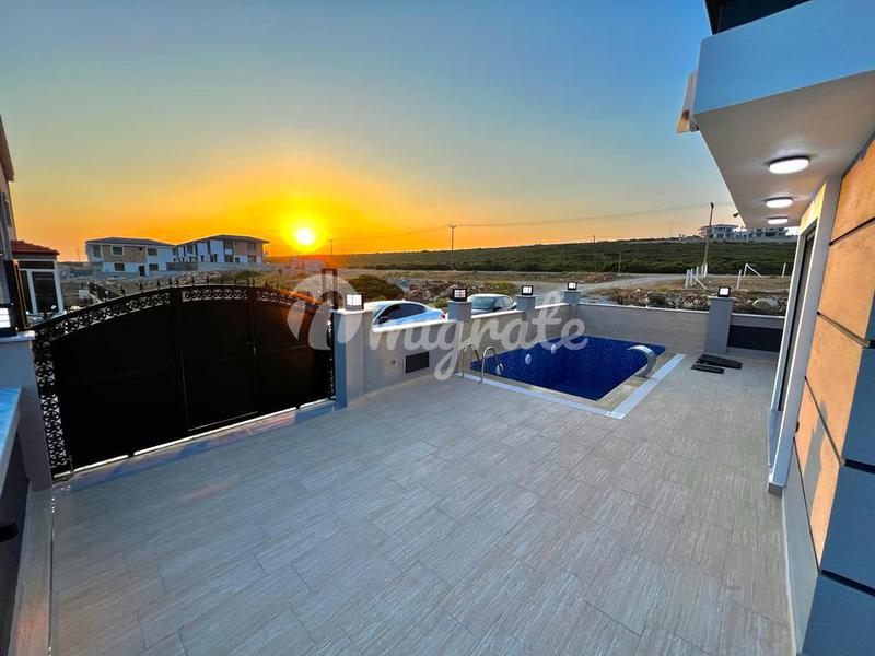 Новая вилла находится в Дидиме, Турция. На вилле 3 спальни, 3 ванные комнаты, кухня, гостиная, балкон, бассейн, парковка, система «умный дом», система видеонаблюдения. Поблизости имеются социальные об