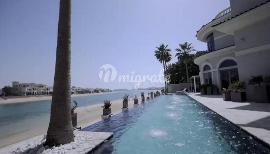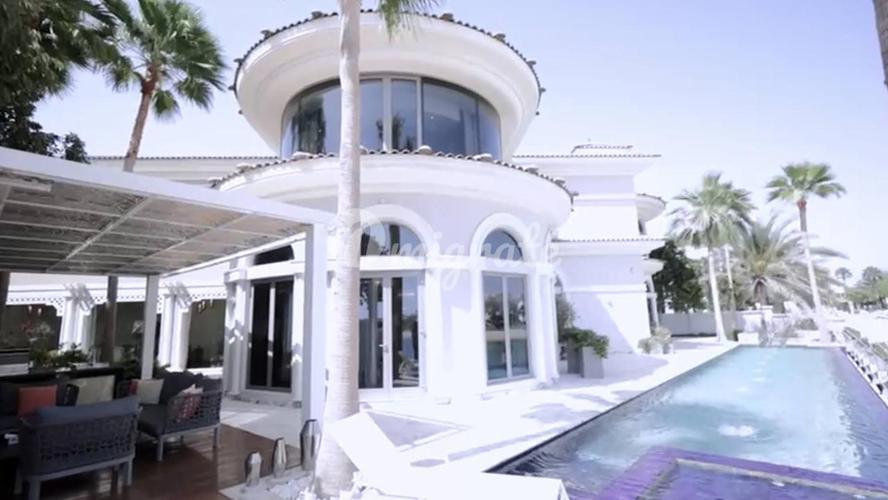 Полностью реконструированная вилла расположена на Пальме Джумейра (Frond M). Двухуровневая вилла включает 6 спален, частный бассейн, кинозал, спа-зону, террасу с открытой кухней и зоной барбекю. На те