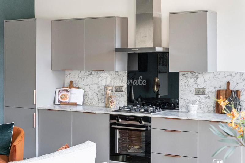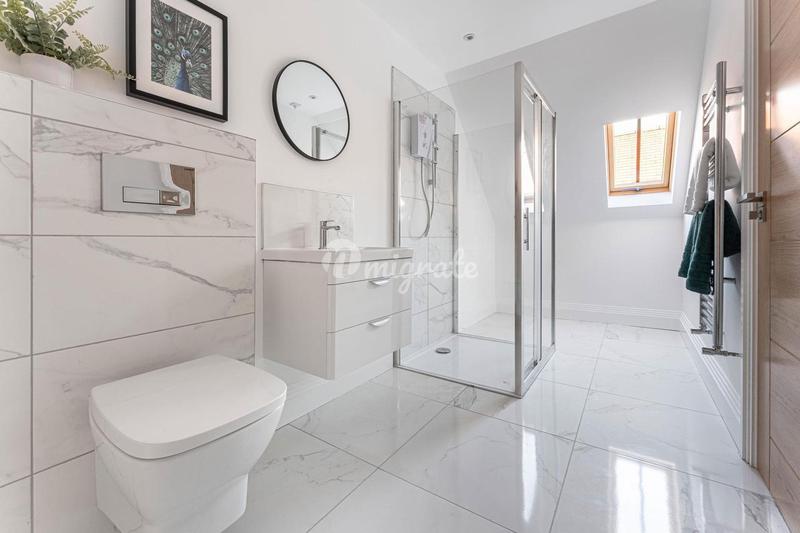 К этому элегантному и хорошо оборудованному дому, расположенному в стороне от частного Куль-де-Сак, ведет мощеная дорога с лужайкой сбоку и миниатюрной живой изгородью впереди. Тропа, идущая от подъез