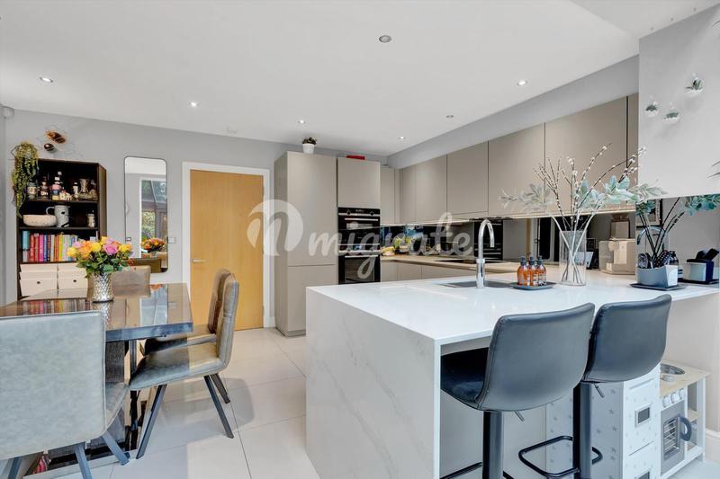 Безупречно оформленный дом с тремя спальнями и тремя ванными комнатами в Вейбридже. Этот дом предлагает бесшовную современную жизнь. На первом этаже находится современная открытая кухня/столовая и сад