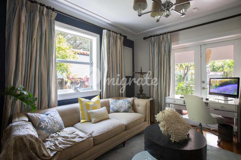 Очаровательный двухэтажный дом в испанском стиле 1937 года постройки с величественными и зрелыми дубами. В этом очаровательном доме есть деревянная арочная входная дверь, ведущая в фойе с двойным пото