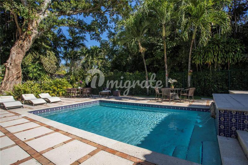 Дом с 5 спальнями и 6 ванными комнатами в частном закрытом анклаве в Южной Кокосовой роще Майами. Большой двор с бассейном, окруженный уединением пышного ландшафта. Просторная главная спальня располож