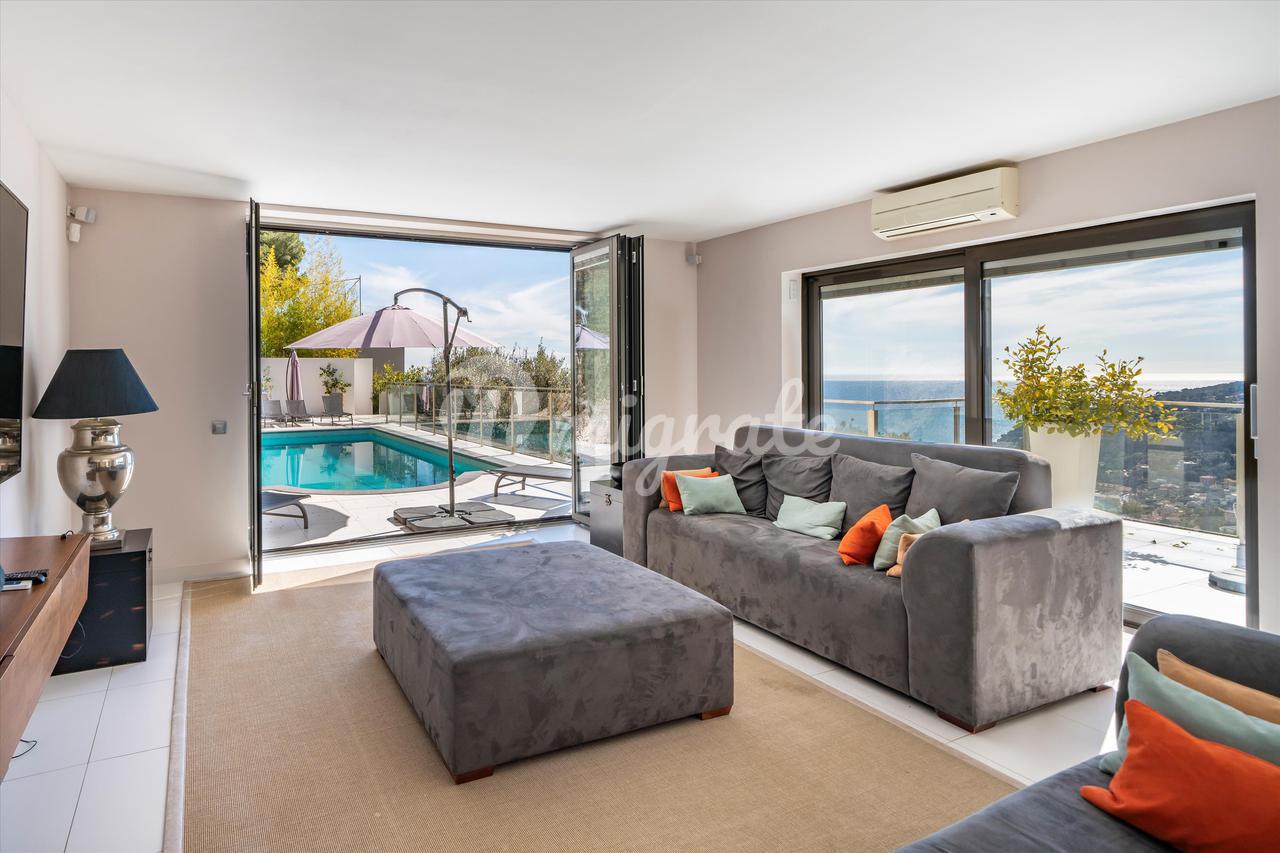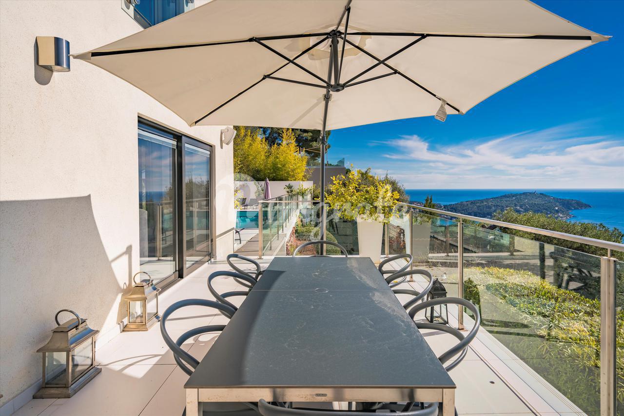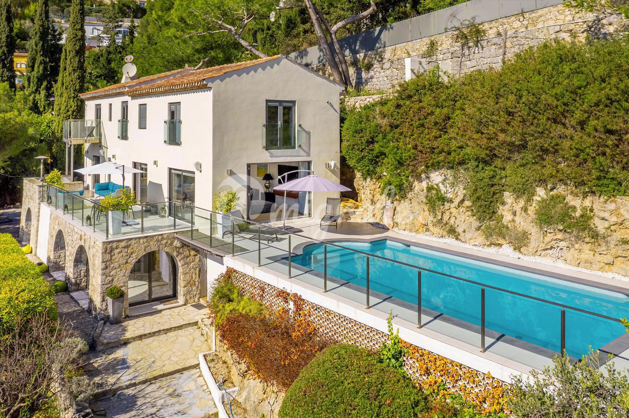 Этот дом площадью около 255 кв.м находится на охраняемой частной территории и имеет превосходный панорамный вид на залив Вильфранш и Кап Ферра.