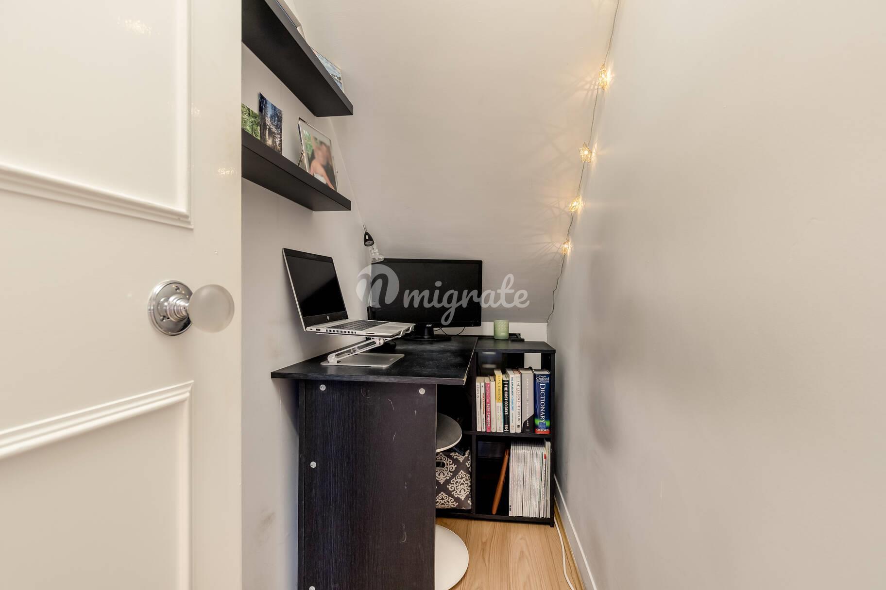 В передней части здания находится спальня с двуспальной кроватью, большой гардеробной и большой гостиной / спальней. Рядом находится главная ванная комната с белым комплектом из трех частей, а также кабинет / подсобное помещение.