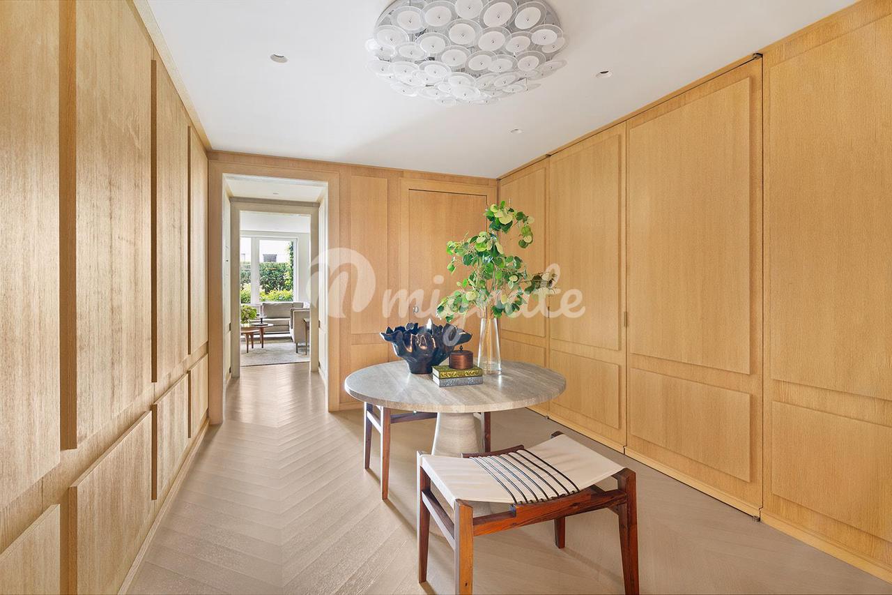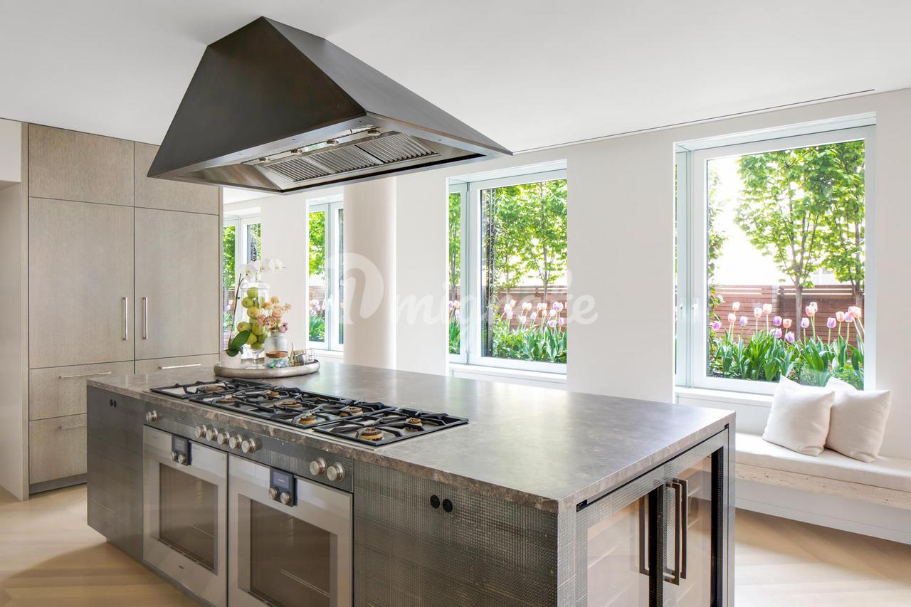 Кухня шеф-повара была полностью реконструирована и стильно оборудована индивидуальной мебелью и мраморными столешницами. Первоклассная бытовая техника включает двухдверный холодильник Sub-Zero и винный холодильник, две посудомоечные машины Miele и полностью вентилируемую варочную панель Gaggenau с восемью конфорками, двумя духовками и тремя ящиками для подогрева Gaggenau. Отдельная кладовая дворецкого предлагает множество мест для хранения и приготовления пищи с раковиной, кофе-баром Miele, микроволновой печью и льдогенератором.