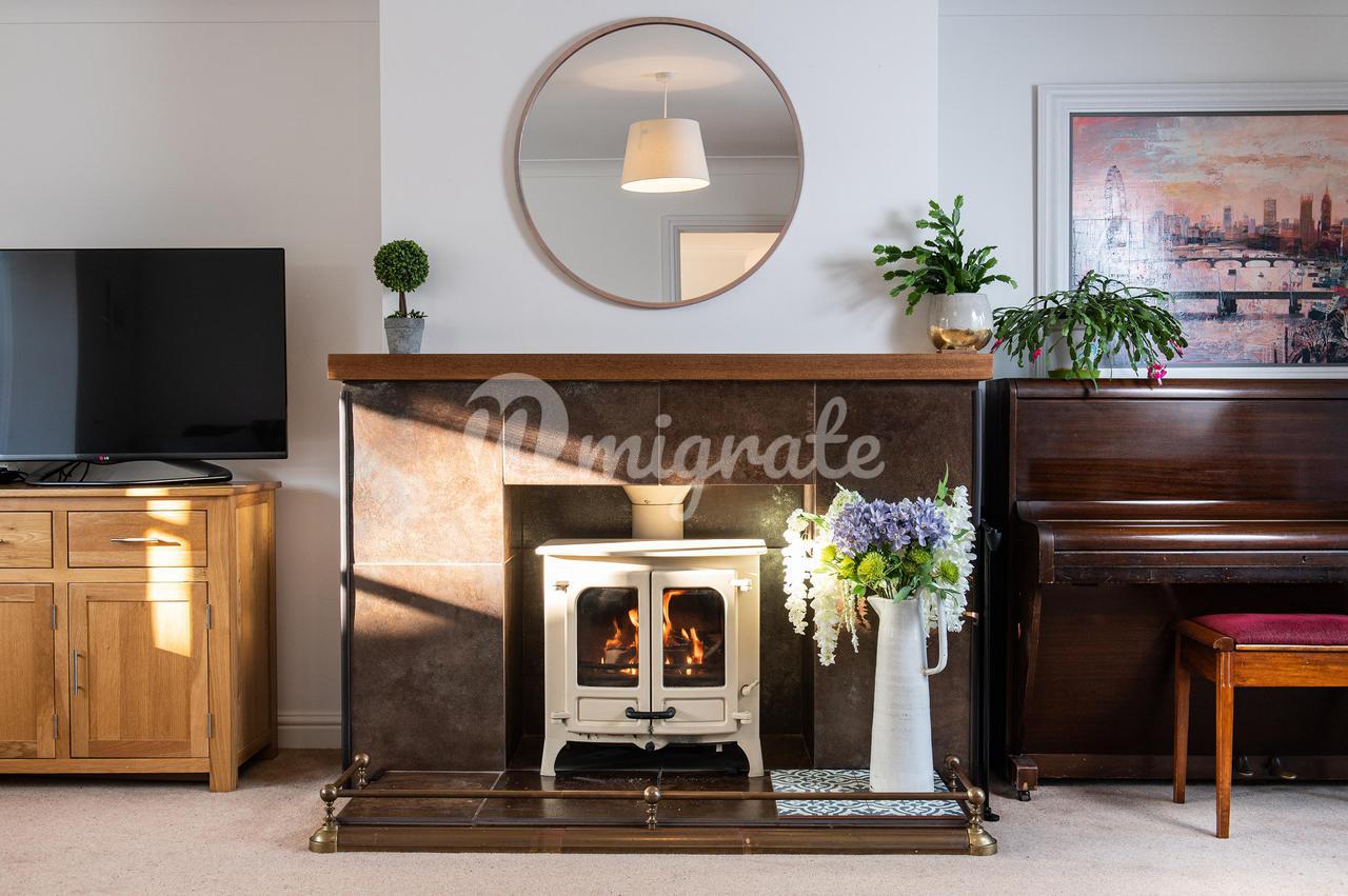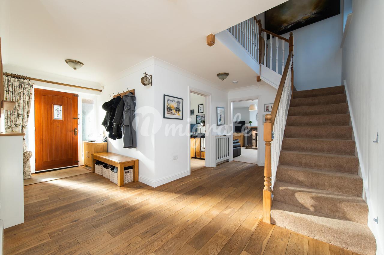 В гостиной есть эркер, выходящий на юг, французские двери с выходом во внутренний дворик и камин с дровяной печью. Кроме того, в доме есть кабинет и дополнительная гостиная/игровая комната. Тем не менее, большая кухня / столовая / общая комната в задней части дома с видом на открытую сельскую местность и кафельным полом находится в центре внимания дома. Стильные современные окрашенные кухонные гарнитуры включают в себя барную стойку, плиту с вытяжкой, двойную раковину, встроенную бытовую технику и потолочный вентилятор. Двустворчатые двери во внутренний дворик идеально подходят для трапезы на свежем воздухе. Существует также оборудованное подсобное помещение с дверью на улицу и место для стиральной машины и сушилки. На первом этаже просторная лестничная площадка с сушильным шкафом. В главной спальне с двумя аспектами есть встроенные шкафы и выложенная плиткой душевая с большой душевой кабиной. Спальня с двуспальной кроватью, 2 стороны на юг, также со встроенными шкафами и ванной комнатой, отделанной плиткой, с отдельной душевой кабиной. Спальня 3 с двуспальной кроватью, также с ванной комнатой с ванной и душем и спальня 4 с двуспальной кроватью и ванной комнатой с душевой комнатой. Планируется расширить эту спальню над кухней, если покупатель пожелает увеличить ее.