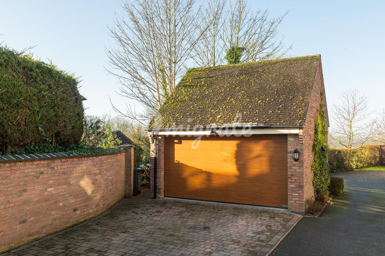 К дому ведет общая частная дорога, обслуживающая четыре дома, есть отдельный гараж на две машины, выложенный кирпичом и плиткой, с газоном позади и дополнительной мощеной парковкой на две машины перед гаражом. Есть лужайка перед домом с широкой мощеной дорожкой к входной двери с верандой над и низкими кустарниками против дома.