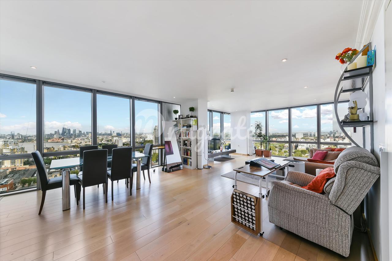 Продается эта чудесно оформленная квартира с 2 спальнями, расположенная на двадцать втором этаже культового комплекса № 1 West India Quay недалеко от Кэнэри-Уорф.