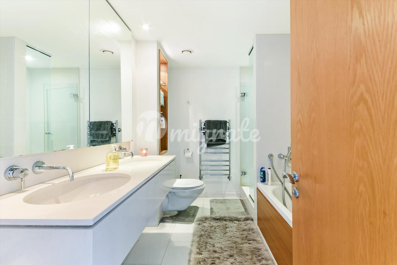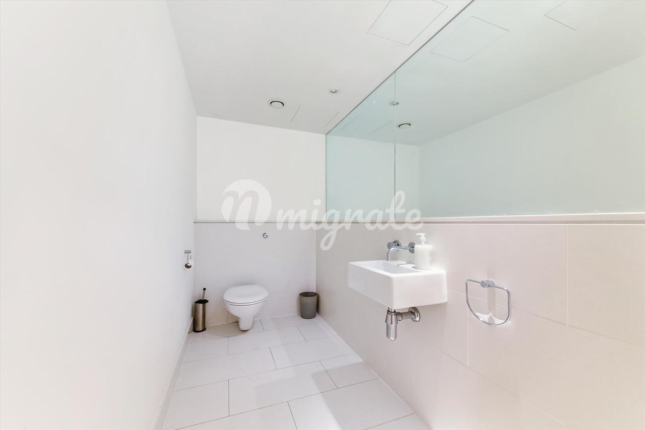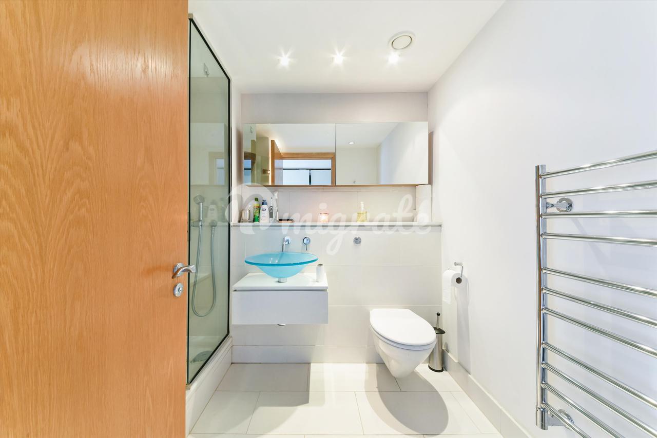 При входе в квартиру есть доступ к гостевому туалету в коридоре, который ведет к кухне открытого плана, столовой и гостиной. В зоне приема гостей окна от пола до потолка обеспечивают максимальное естественное освещение и предлагают захватывающий вид на горизонт Кэнэри-Уорф, а также на горизонт города. Умная оборудованная кухня предлагает барную стойку, встроенную технику и доступ к подсобному помещению. В просторной главной спальне есть гардеробная со встроенными шкафами, собственная ванная комната с умывальниками для него и для нее, ванна и душевая кабина.