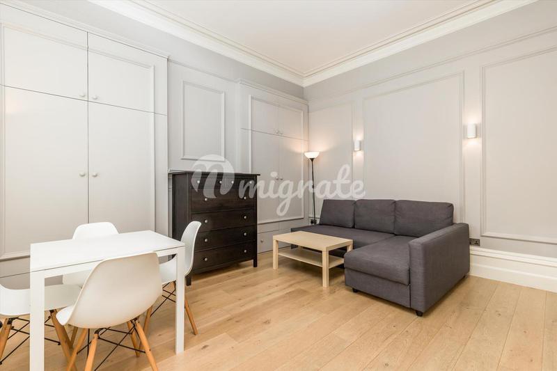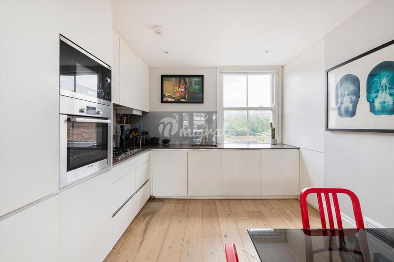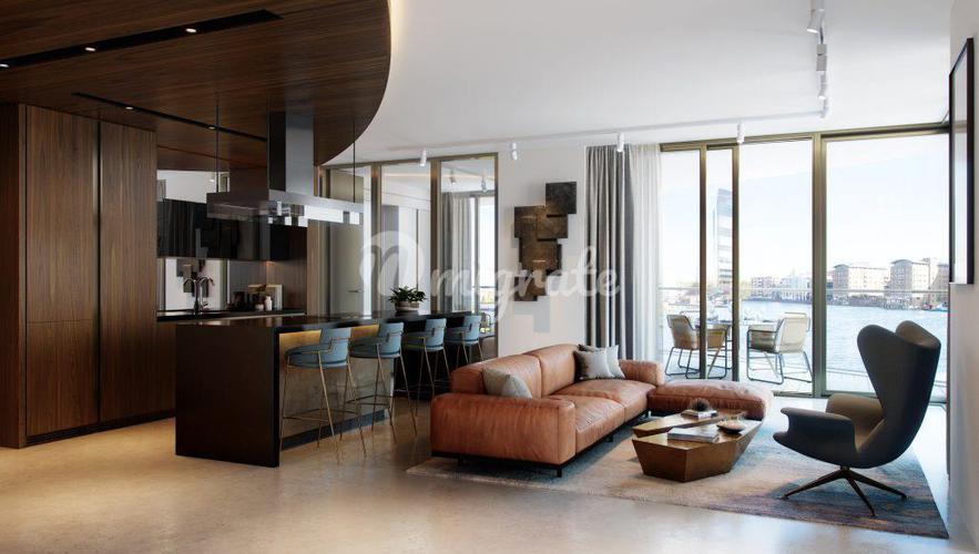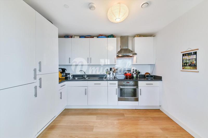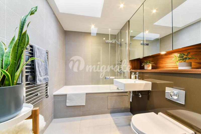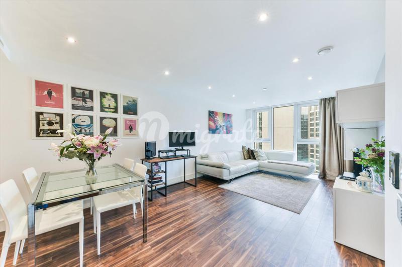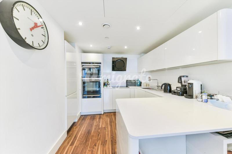 При входе в квартиру есть доступ к гостевому туалету в коридоре, который ведет к кухне открытого плана, столовой и гостиной. В зоне приема гостей окна от пола до потолка обеспечивают максимальное естественное освещение и предлагают захватывающий вид на горизонт Кэнэри-Уорф, а также на горизонт города. Умная оборудованная кухня предлагает барную стойку, встроенную технику и доступ к подсобному помещению. В просторной главной спальне есть гардеробная со встроенными шкафами, собственная ванная комната с умывальниками для него и для нее, ванна и душевая кабина.