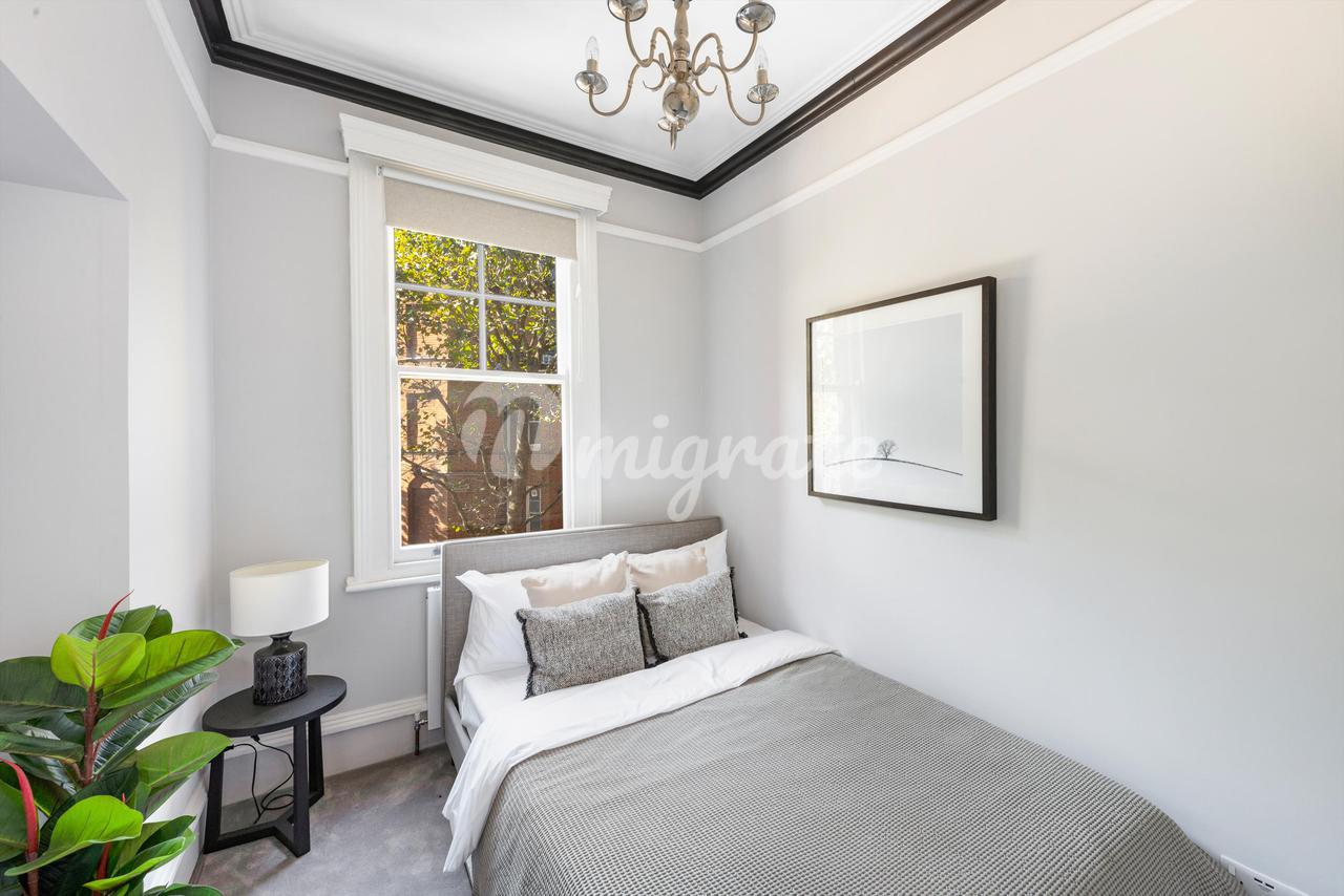 Размещение включает в себя; приемная с камином и эркером, из которого открывается вид на обсаженный деревьями полумесяц. Существует прекрасно законченная и полностью интегрированная кухня / столовая с множеством встроенных единиц.