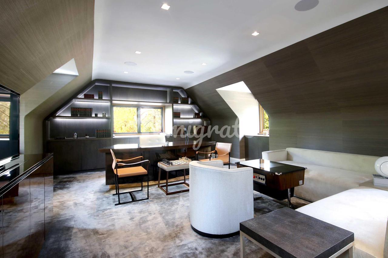 Размещение и удобства Приемная | Приемная | Гостиная Столовая | Кухня / зал для завтрака | Семейный номер | Игровая комната | Медиа-комната | Подсобное помещение | Два исследования | Отличный люкс с главной спальней и гардеробной | Две роскошные ванные комнаты | Люксы с четырьмя дополнительными спальнями | Лофт на втором этаже | Сенсационная крытая комната развлечений | Сауна и раздевалки | Спортзал и автономная пристройка для персонала | Гараж на три машины | Фантастические террасы с летней кухней | теннисный корт | Красивые ландшафтные сады и территория